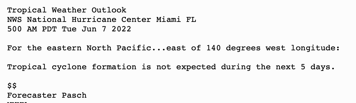 | Tropical Weather Outlook 500 AM PDT Tue June 7 2022Tropical Weather Discussion 1005 UTC Tue June 7 2022 | |