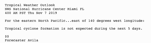 7 Nov 2019 Weather in Cayman & Tropical Report