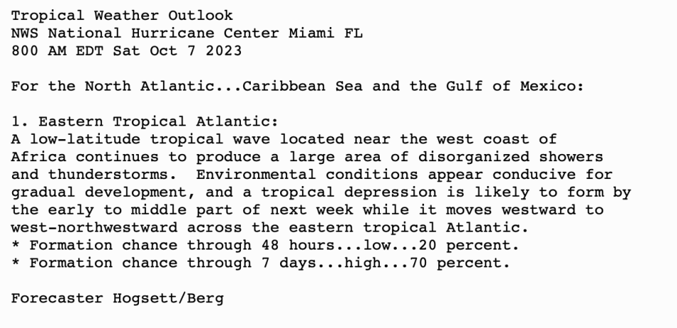 7 Oct Weather in Cayman & Tropical Report, 1 Dist