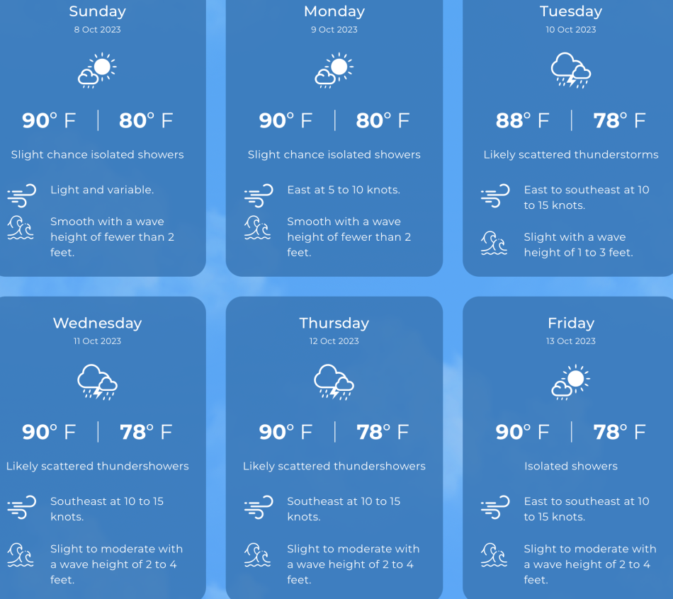Temperatures: Yesterday – Low 80.4°F, High 90.8°F  Today (Expected) – Low 80°F High 90°F