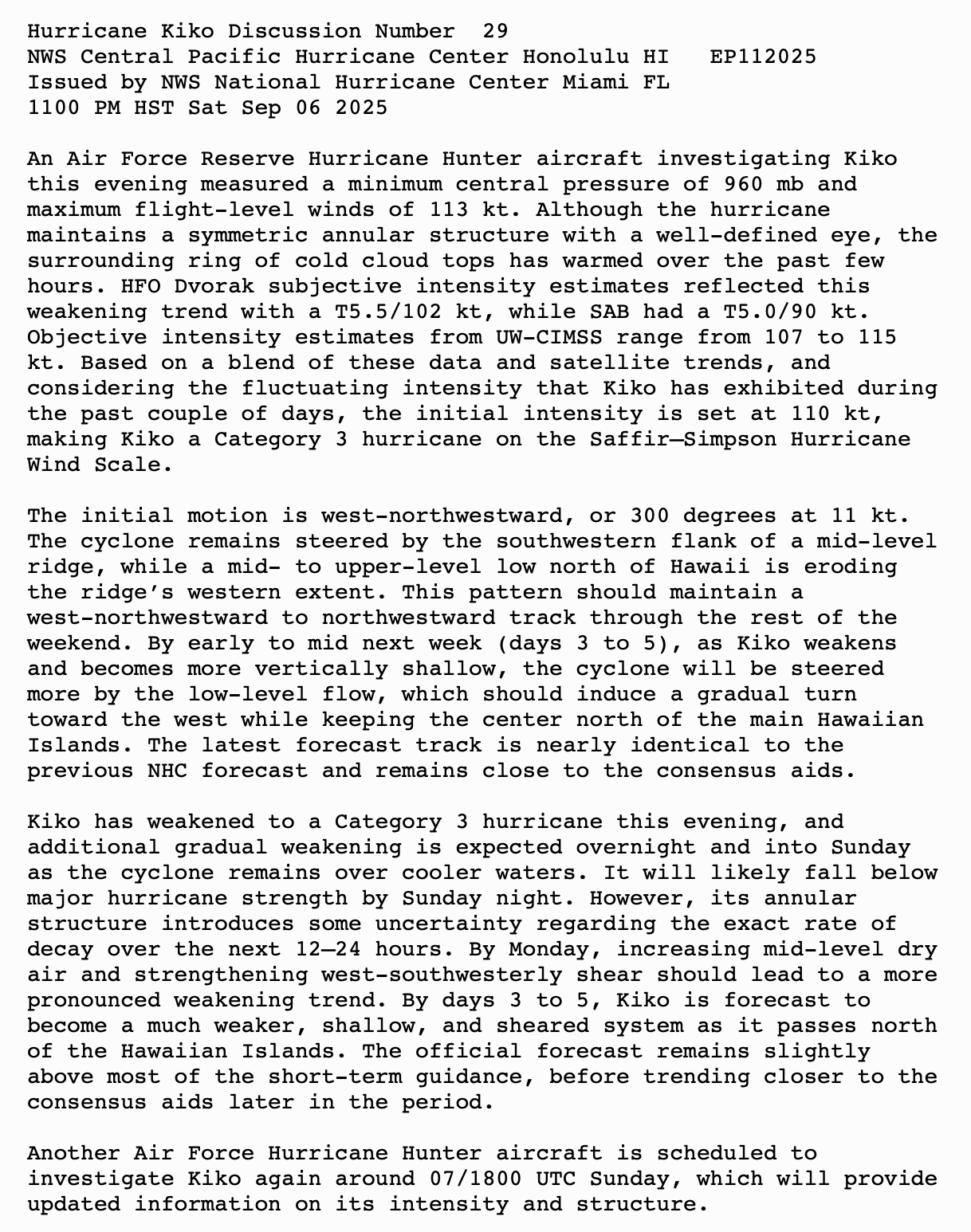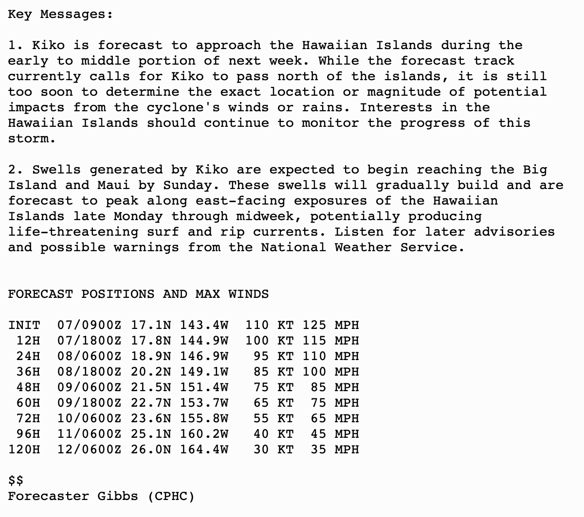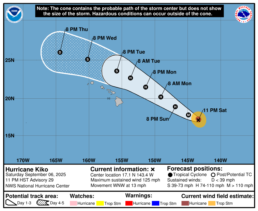 KIKO REMAINS A MAJOR HURRICANE IN THE CENTRAL PACIFIC