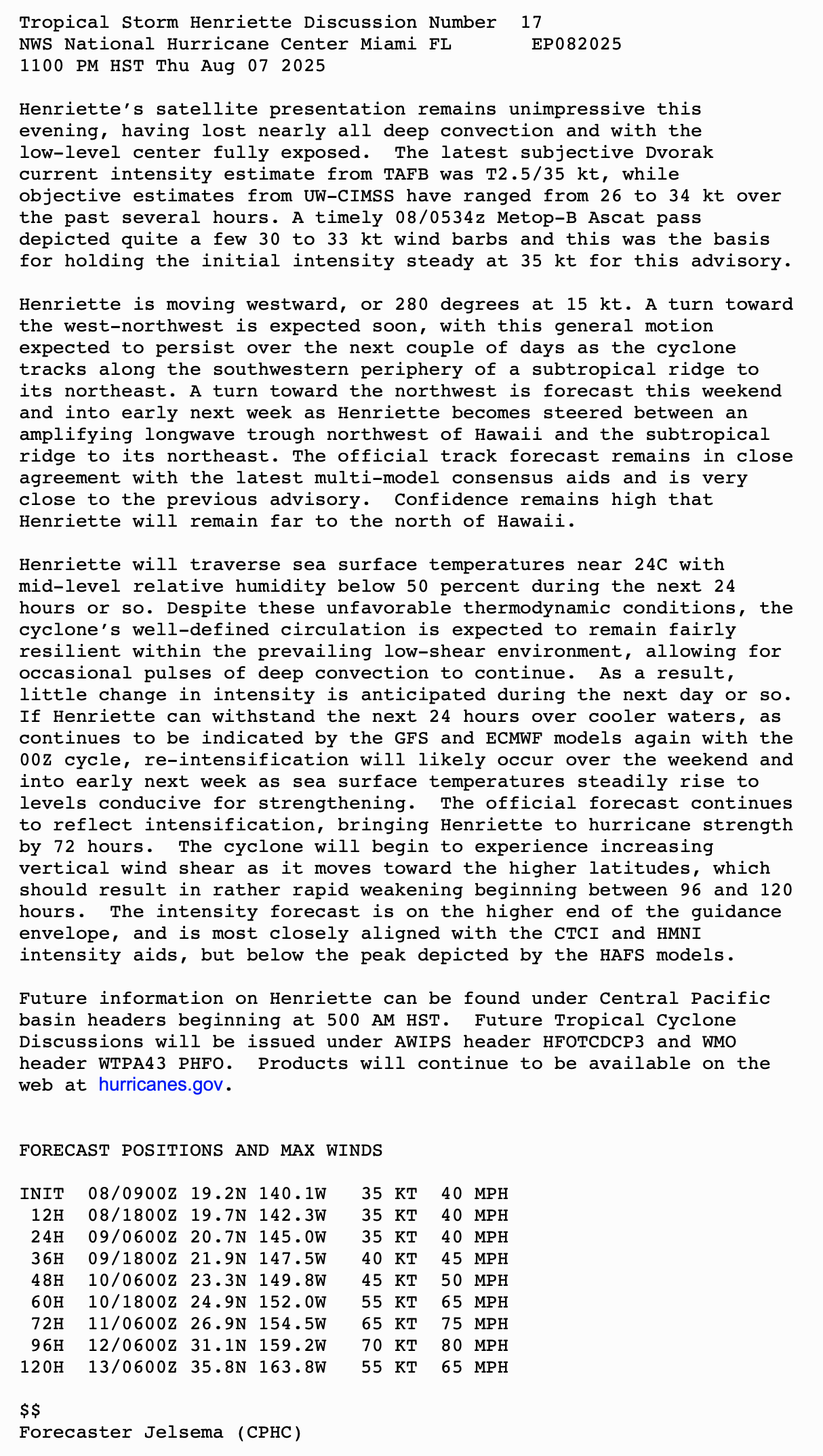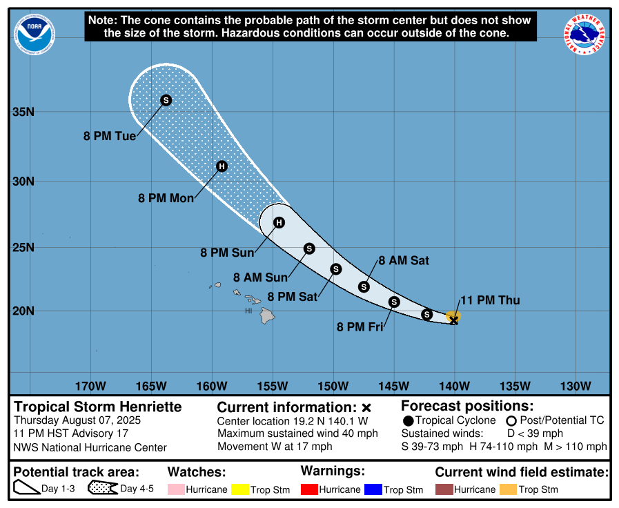 HENRIETTE ENTERS THE CENTRAL PACIFIC BASIN
