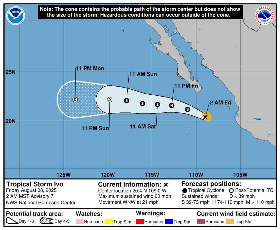 IVO MOVING WEST-NORTHWESTWARD AWAY FROM MEXICO
