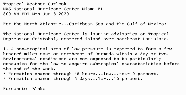 | Tropical Weather Outlook (en Español*) 800 AM EDT Mon Jun 8 2020 |