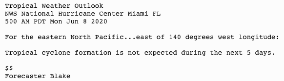 | Tropical Weather Outlook 500 AM PDT Mon Jun 8 2020 |