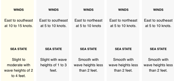 Light to moderate southeasterly winds and seas are expected across the Cayman Islands over the next 24 hours..