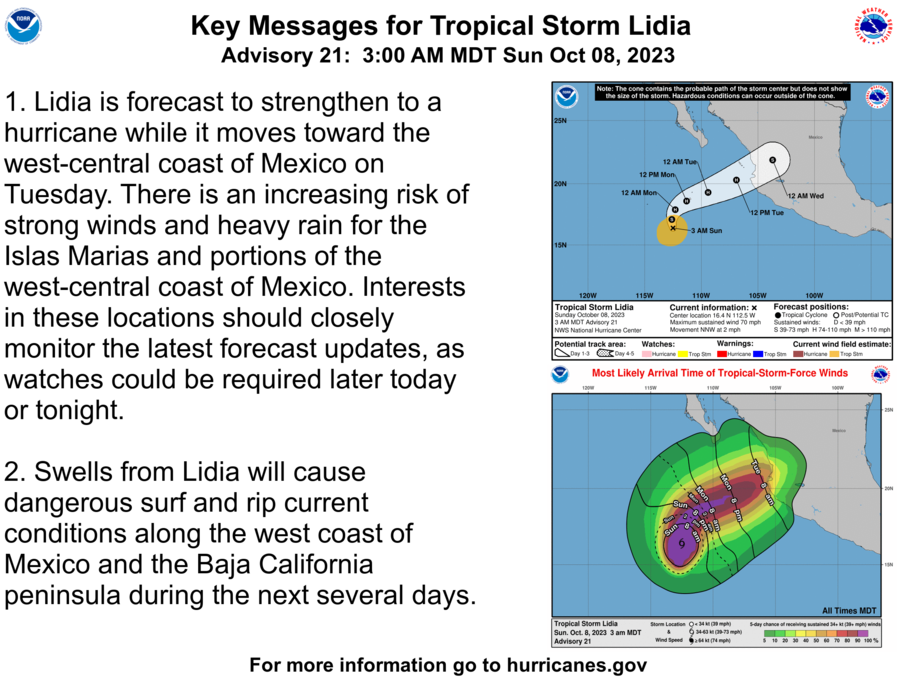 LIDIA MOVING LITTLE WITH NO CHANGE IN STRENGTH… …FORECAST TO APPROACH THE WEST COAST OF MEXICO AS A HURRICANE ON TUESDAY