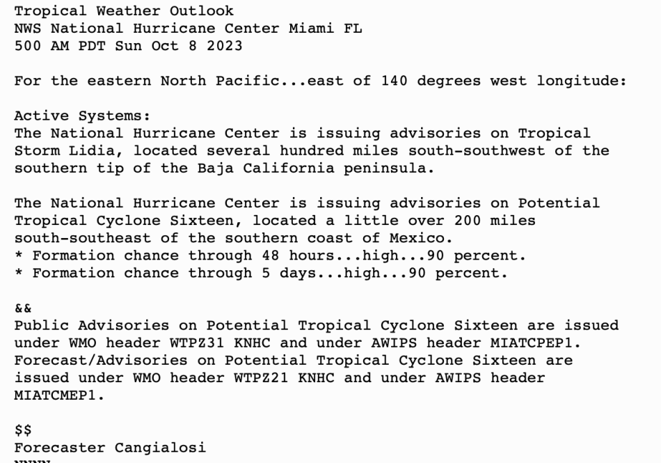 | Tropical Weather Outlook (en Español*) 800 AM EDT Sun 8 Oct 2023 | |