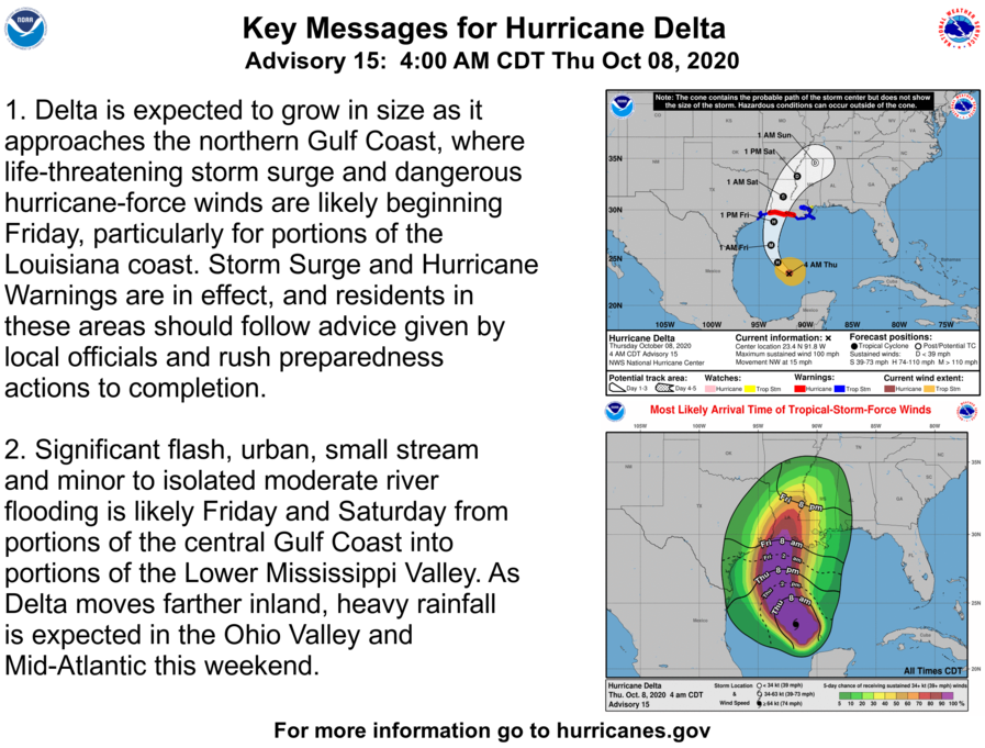 NOAA AND AIR FORCE RESERVE HURRICANE HUNTER AIRCRAFT INVESTIGATING DELTA… …HURRICANE CONDITIONS AND LIFE-THREATENING STORM SURGE EXPECTED TO BEGIN ALONG PORTIONS OF THE NORTHERN GULF COAST ON FRIDAY.
