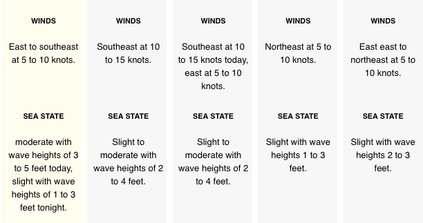 Winds: ESE 10-15 mph Tonight: ESE 5-10 mph,