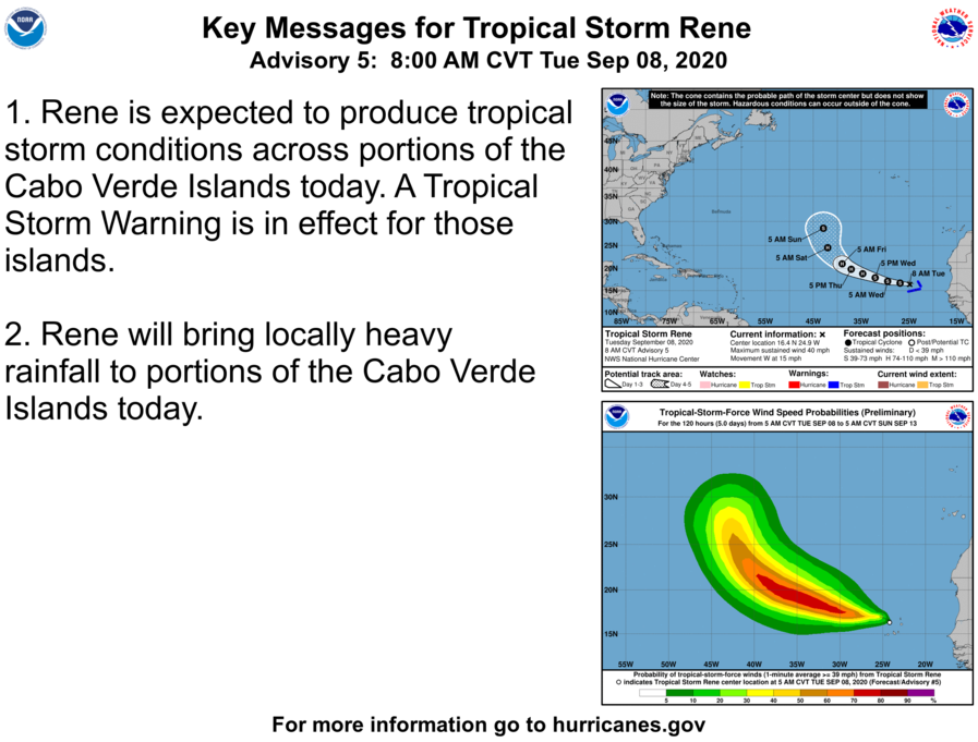 TS RENE MOVING ACROSS THE WESTERN CABO VERDE ISLANDS… …EXPECTED TO PRODUCE TROPICAL-STORM-FORCE WINDS AND HEAVY RAINFALL THERE FOR A FEW MORE HOURS