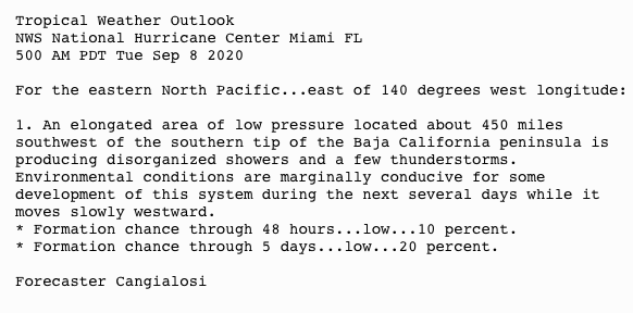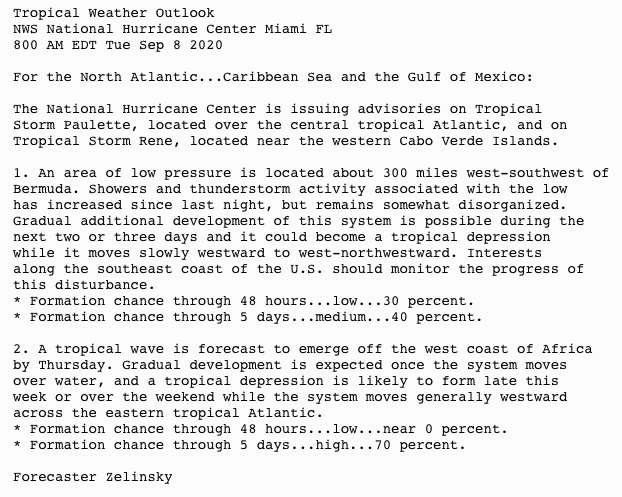 | Tropical Weather Outlook (en Español*) 800 AM EDT Tue Sep 8 2020 |