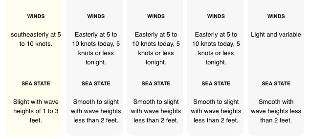 Winds: Today: SE 10-20 mph Tonight: SE 5-10 mph