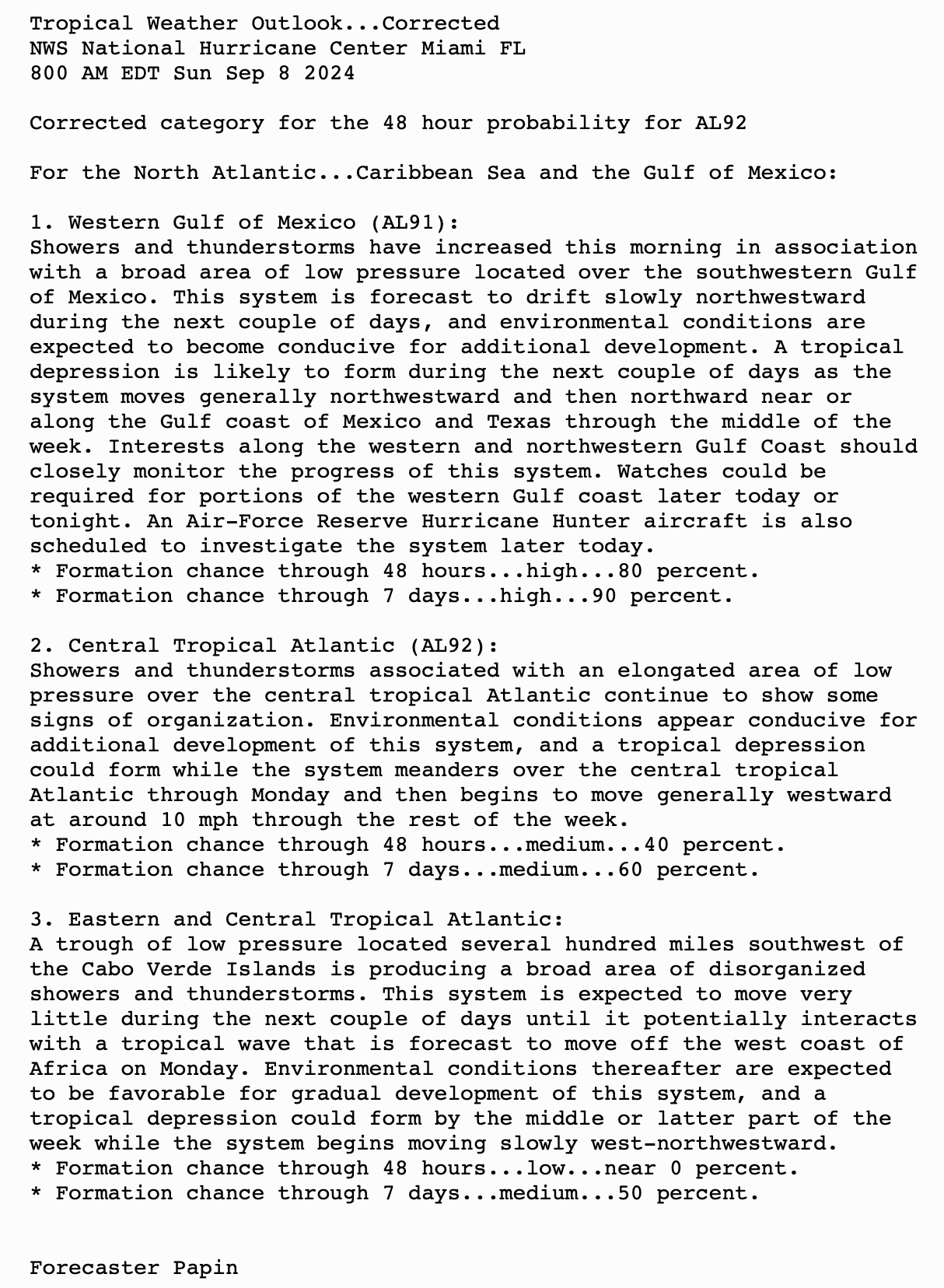 | Tropical Weather Outlook Text | Tropical Weather Discussion |