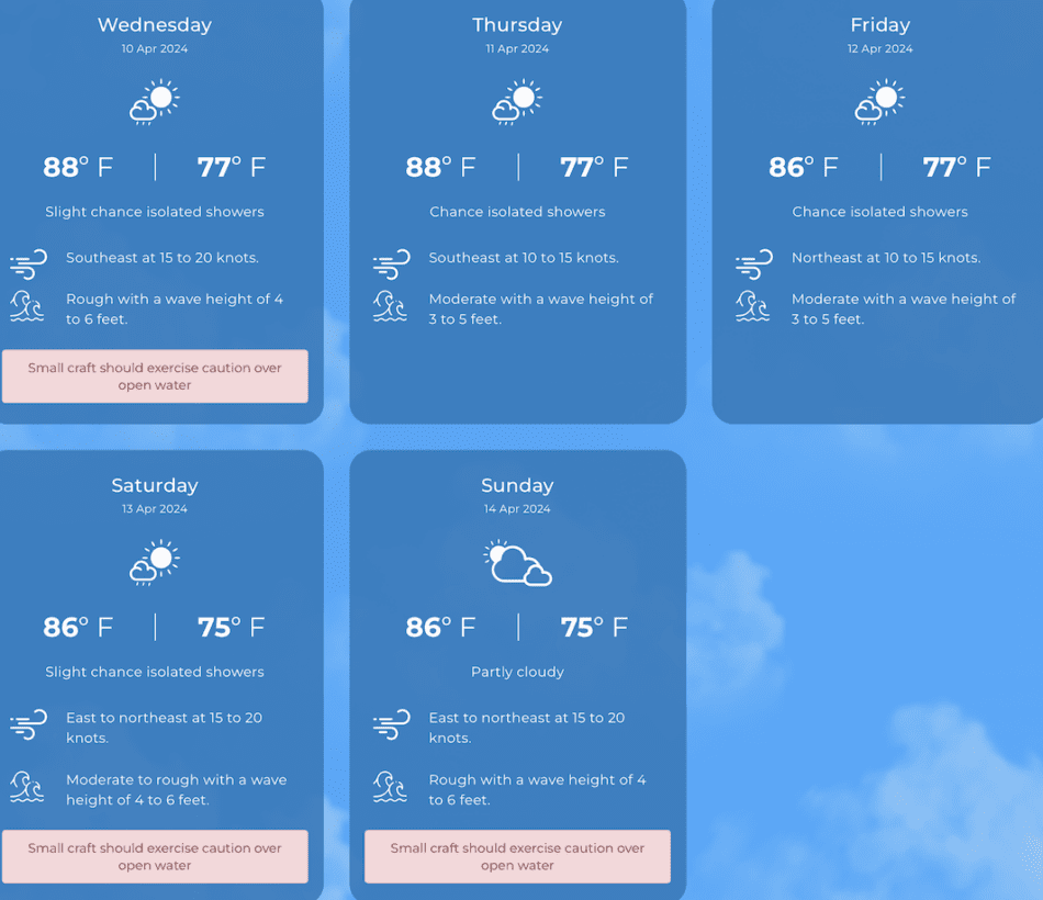 Sea: Moderate to rough with a wave height of 4 to 6 feet. Small craft should exercise caution over open water.