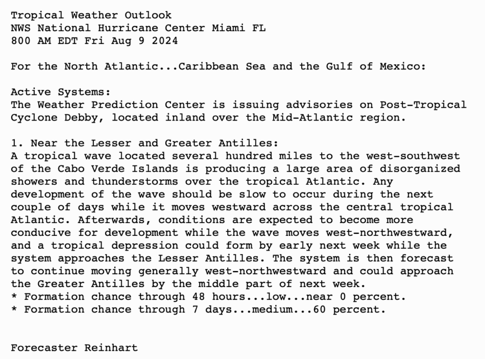 | Tropical Weather Outlook Text | Tropical Weather Discussion |