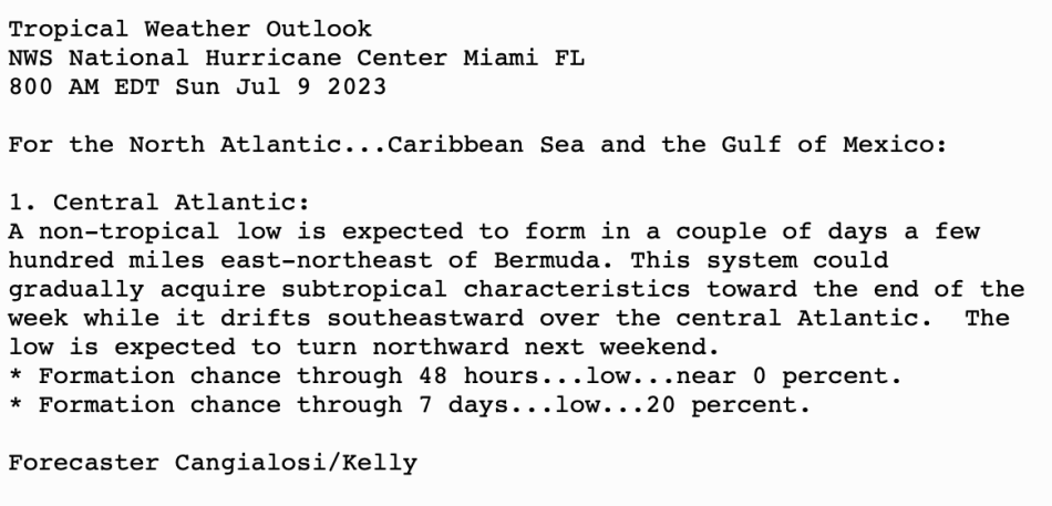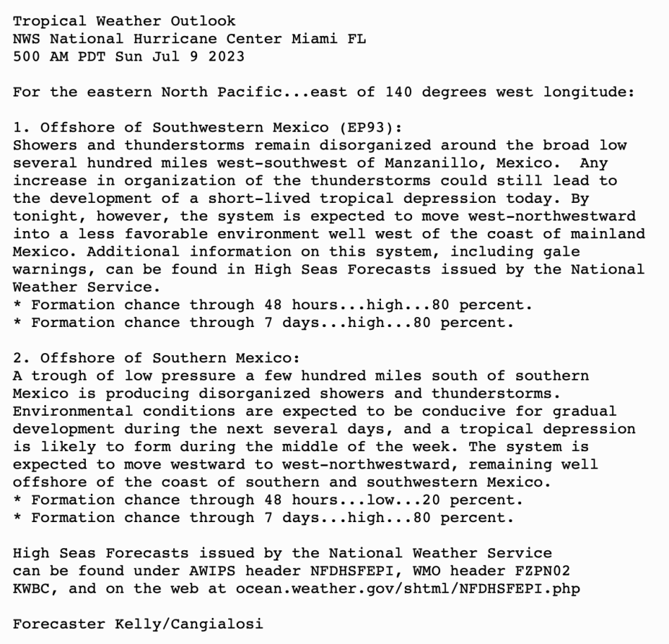 | Tropical Weather Outlook (en Español*) 800 AM EDT Sun 9 Jul 2023 | |