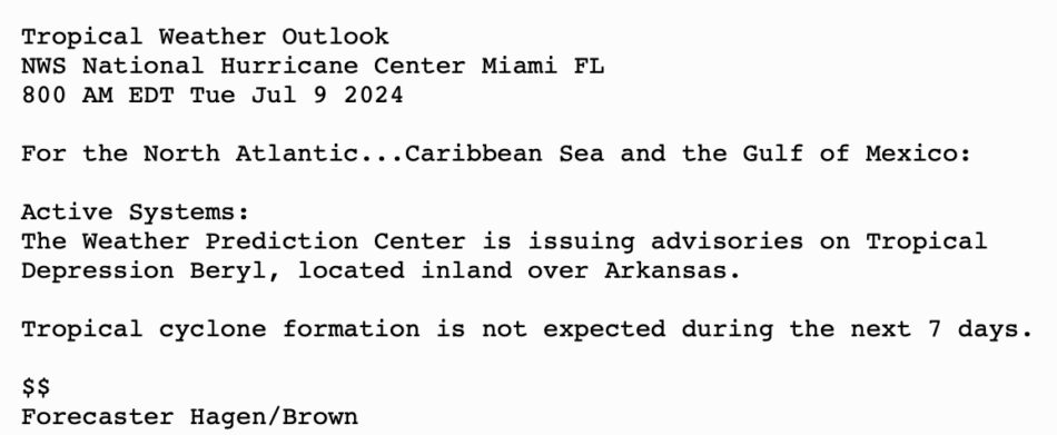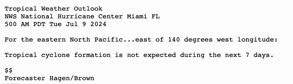 | Tropical Weather Outlook 500 AM PDT Tue 9 July 2024 Tropical Weather Discussion 1005 UTC Tue 9 July 2024 | |