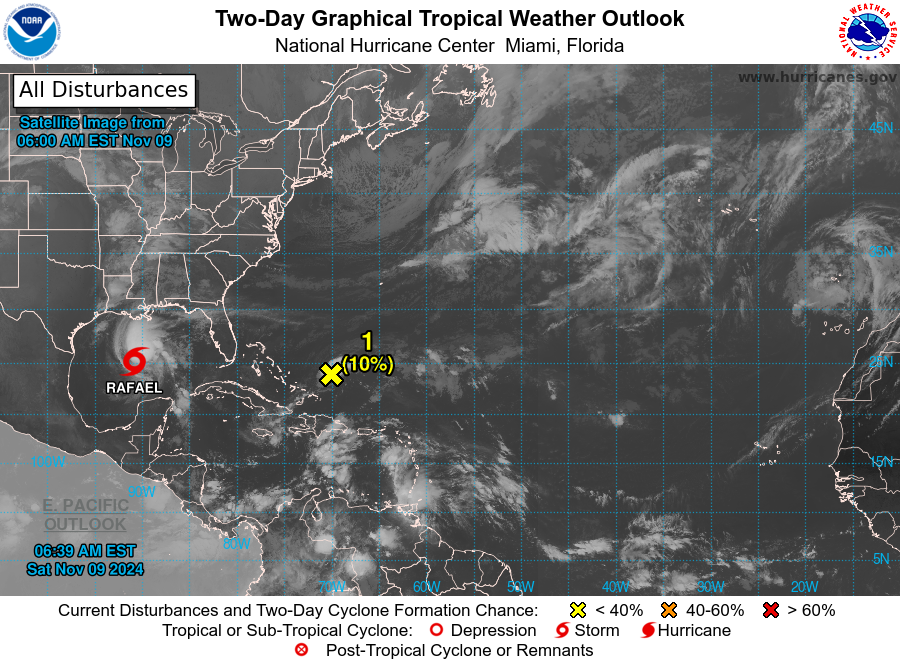 9 Nov Weather in Cayman & Tropical Report, 1 TS, 1 Dist.