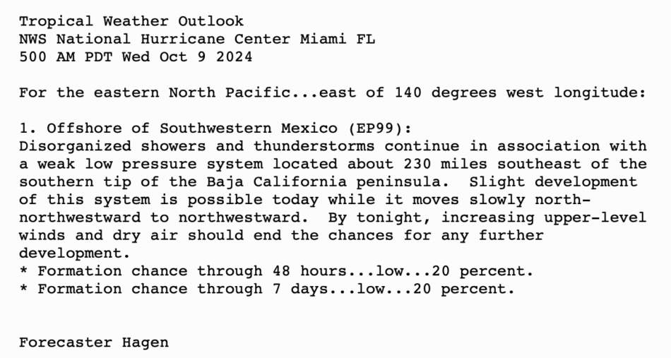 | Tropical Weather Outlook Text | Tropical Weather Discussion |