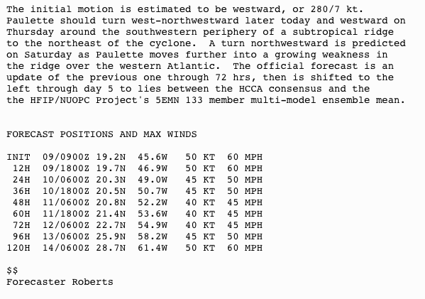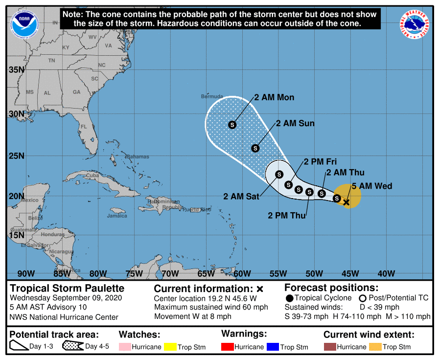SHEARED PAULETTE JOGS TO THE WEST… …EXPECTED TO TURN WEST-NORTHWESTWARD LATER TODAY