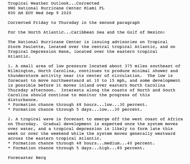 9 Sep Weather in Cayman & Tropical Report, 1 TS, 1 TD, 2 Dist