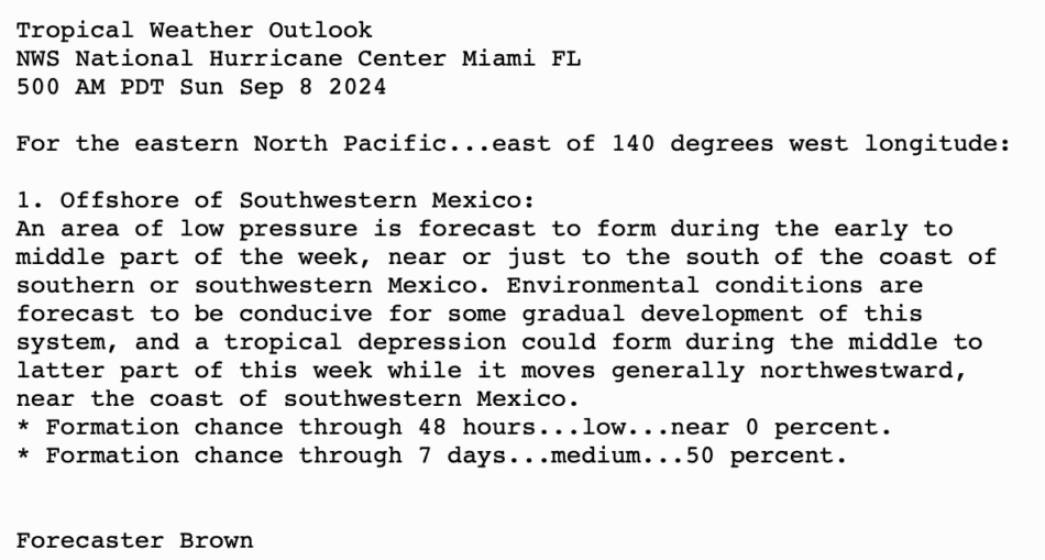 | Tropical Weather Outlook Text | Tropical Weather Discussion |