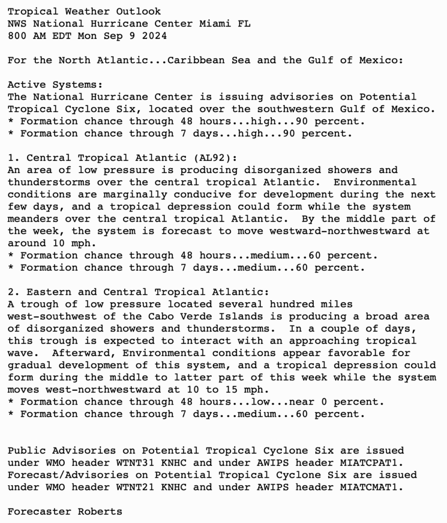 | Tropical Weather Outlook Text | Tropical Weather Discussion |