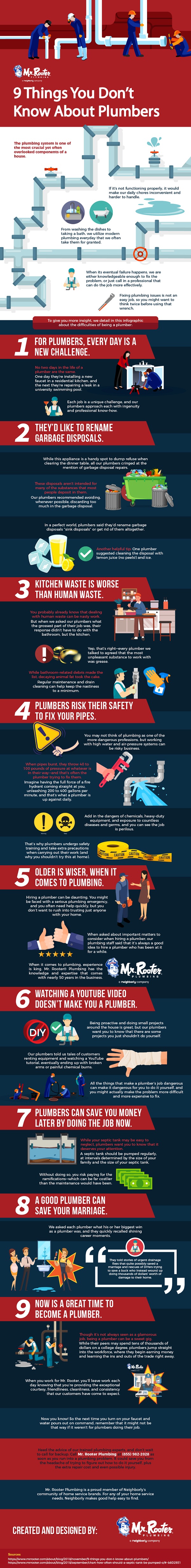 Want to learn more about plumbers and what make their job especially fun and important to the society? Check out this infographic of Mr. Rooter to learn more!