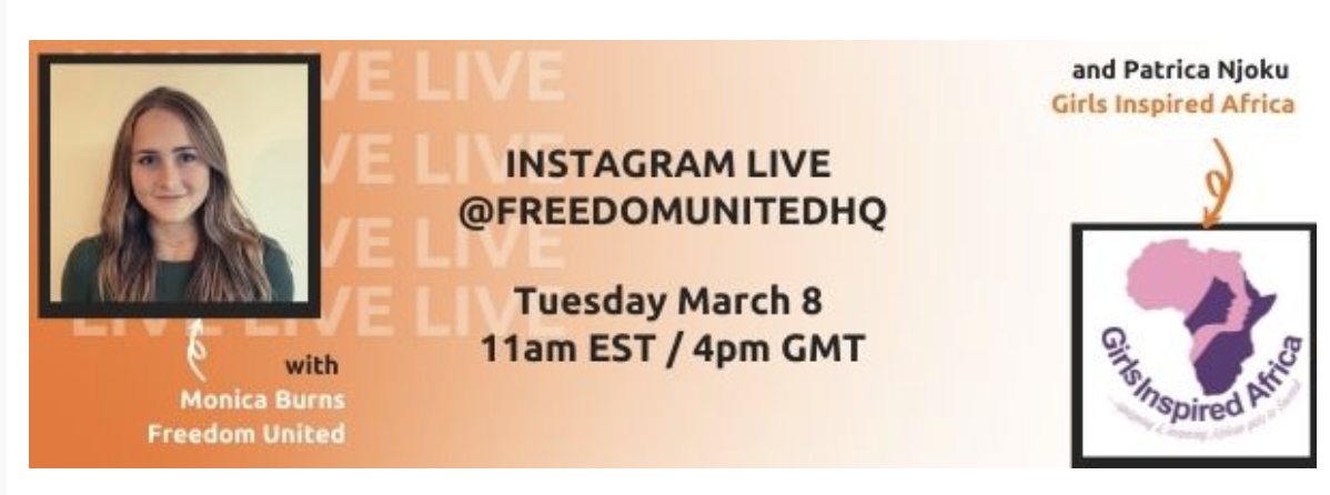 | Freedom United and Girls Inspired are coming together on International Women’s Day to celebrate the resilience and determination of women and girls who have survived trafficking. Join us on Instagram Live on Tuesday March 8 at 11am EST to find out more about the challenges facing trafficking survivors in Nigeria and the support that will help them on their road to recovery. We are independent – our work is not influenced by government, corporate or other interests. If you can, please consider making a regular $10 donation to sustain our work building power for change. Thank you. |