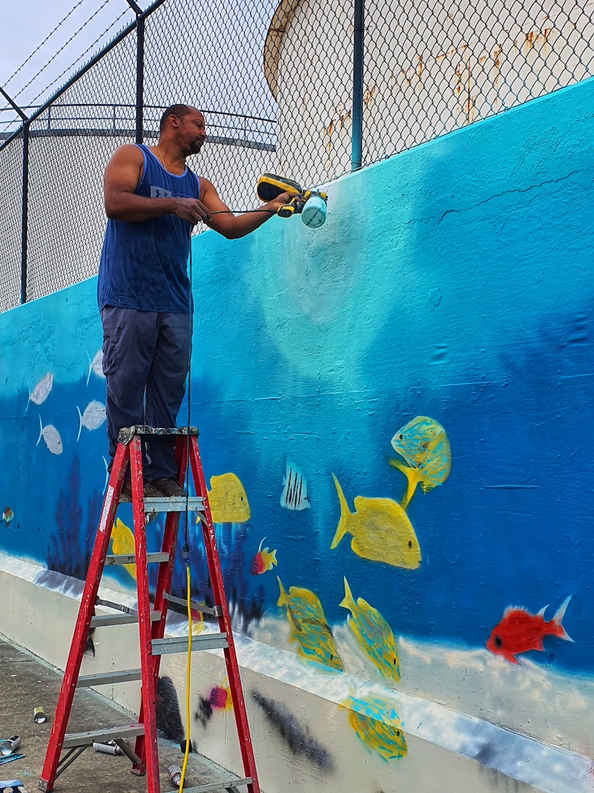 Each artist is assigned to one of 4 charities and allowed to craft a mural that aligns with the missions and visions of the respective charity while incorporating the Rubis Cayman 10th anniversary theme, “10 Years of Fueling the Cayman Islands”.