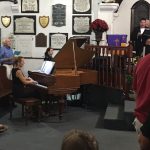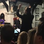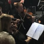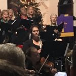 As the conductor’s podium was in two different places she had to scramble between them when conducting the choir or the orchestra or both. As some members of the choir were also musicians she had to maneuver around them, too. At one time she even called out, “It’s gridlock” when everyone involved in this scampering to their places came to an abrupt stop.