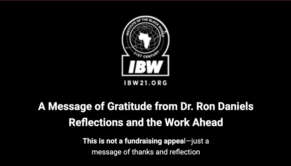 In this special message recorded during Kwanzaa, Dr. Ron Daniels, President of the Institute of the Black World 21st Century, expresses deep gratitude to friends, supporters, and sustaining contributors who make the work of IBW21 possible—not only through financial support, but through solidarity, participation, and shared commitment.