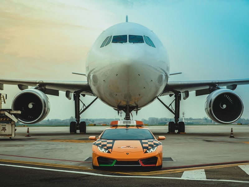 A new Lamborghini Huracán RWD Follow-Me at Bologna Airport