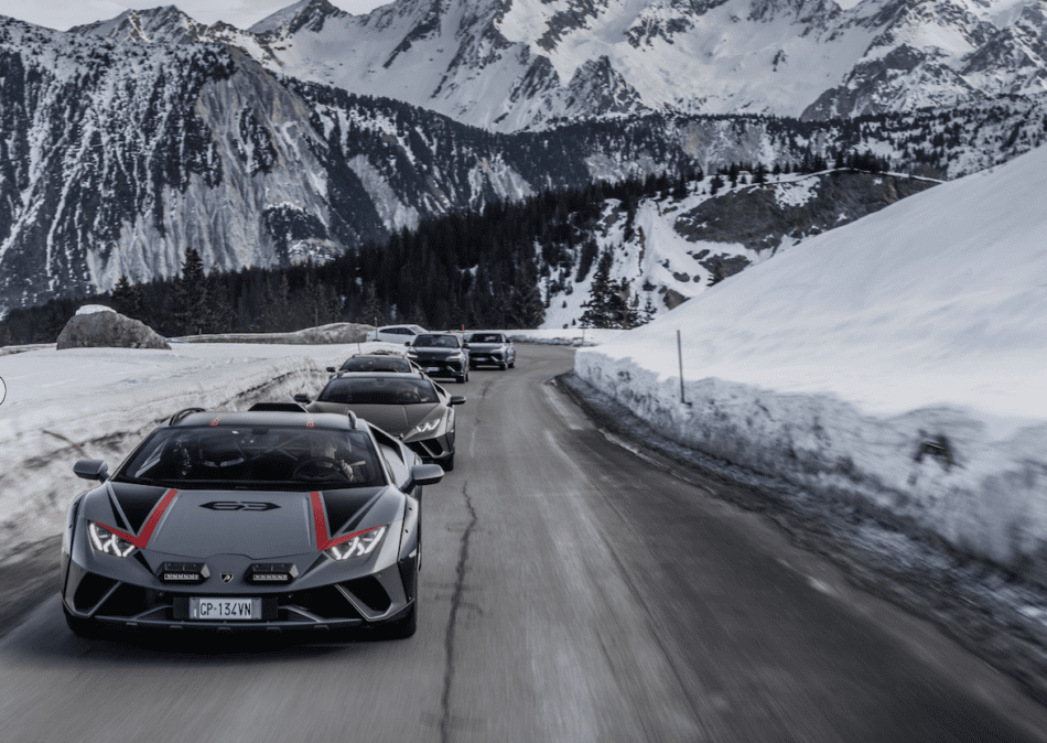 A fleet of Lamborghini Urus S and Huracán Sterrato stirring the French Alps