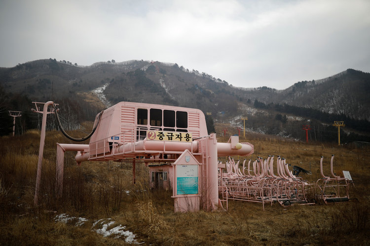 Ski lift chairs hanging at the abandoned resort. Kim Hong-Ji/Reuters