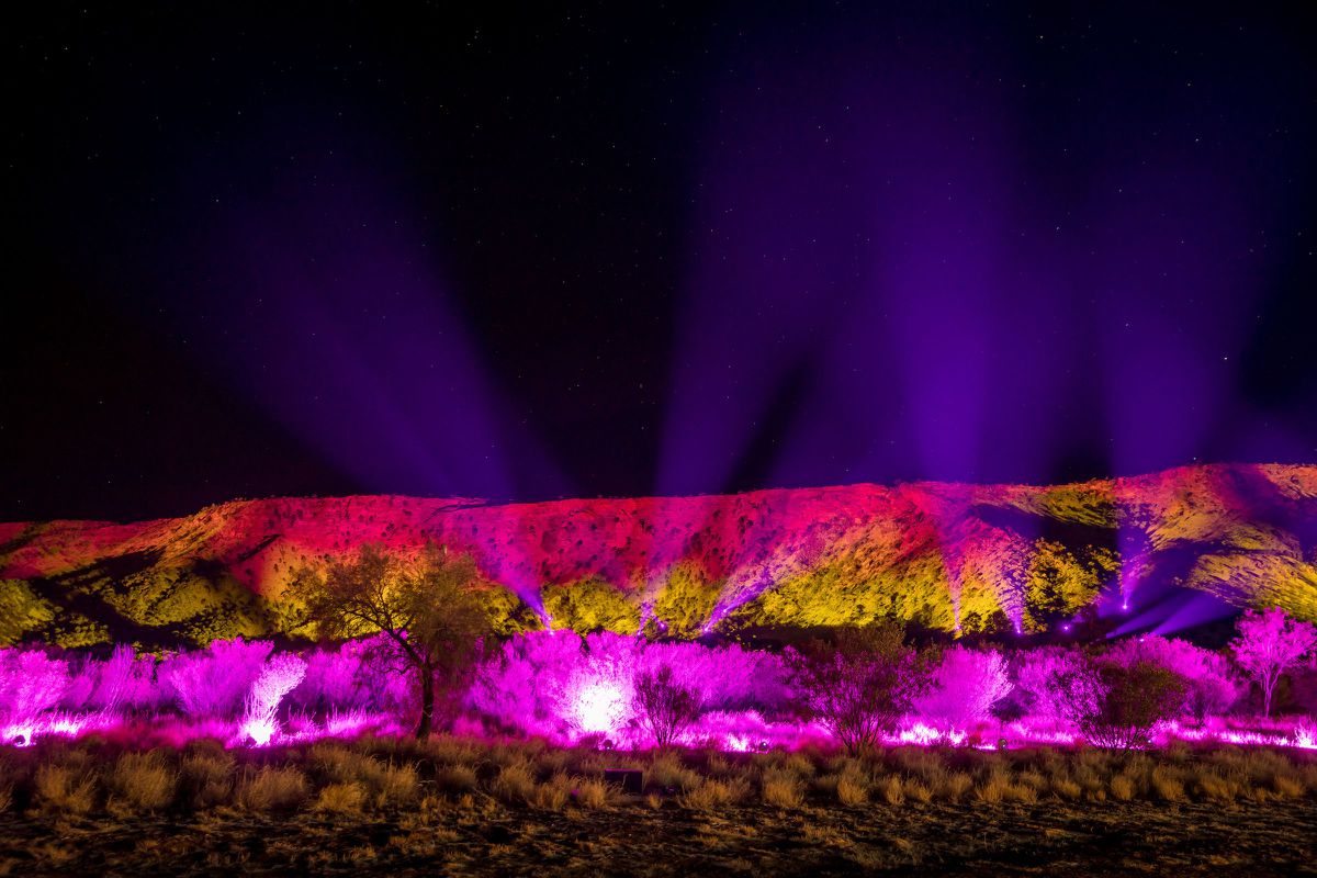 Numerous large-scale light works are being switched on every night, including a highly ambitious illumination of the epic MacDonnell Ranges.