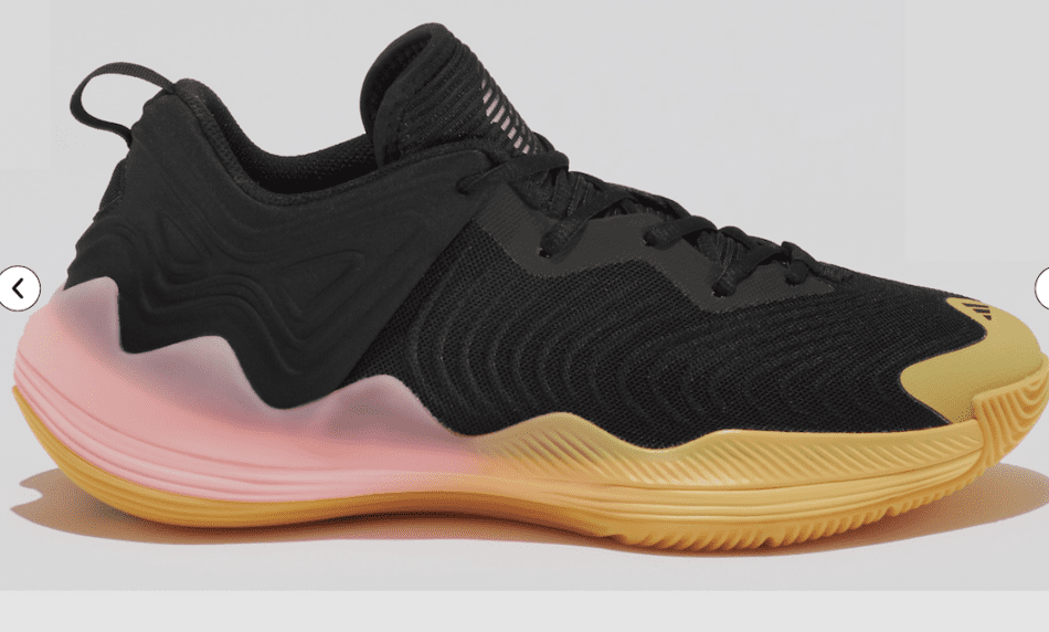 The flare flashes across each shoe, either onto the upper of each footwear model, or on its sole – meaning when the athlete performs, the fire effect will flicker with every movement. Three stripes are just visible against a black and white color scheme, helping reduce visual distractions caused by the shoe during competition.