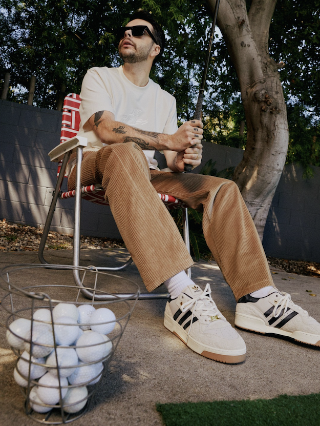 The collection is then highlighted by 100 Thieves’ take on an iconic adidas sneaker: the Rivalry Nadeshot. With a tonal off-white upper, gum rubber outsole, and co-branded details including lace charms and sock liners, as well as Nadeshot logos on the right heel mustache and tongues, the daring look is the 100 Thieves founder’s first ever collaborative sneaker.