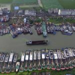 Boats anchor and prepare to weather Typhoon Chan-Hom as it approaches Taizhou, Zhejiang Province. Chinese authorities suspended train services, closed schools, and brought trawlers back to port.