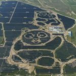 The panda-shaped solar plant in Datong, China, is seen from above.