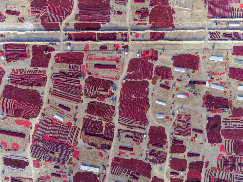 Red chilli is dried in the sun in Xinjiang Uighur Autonomous Region.