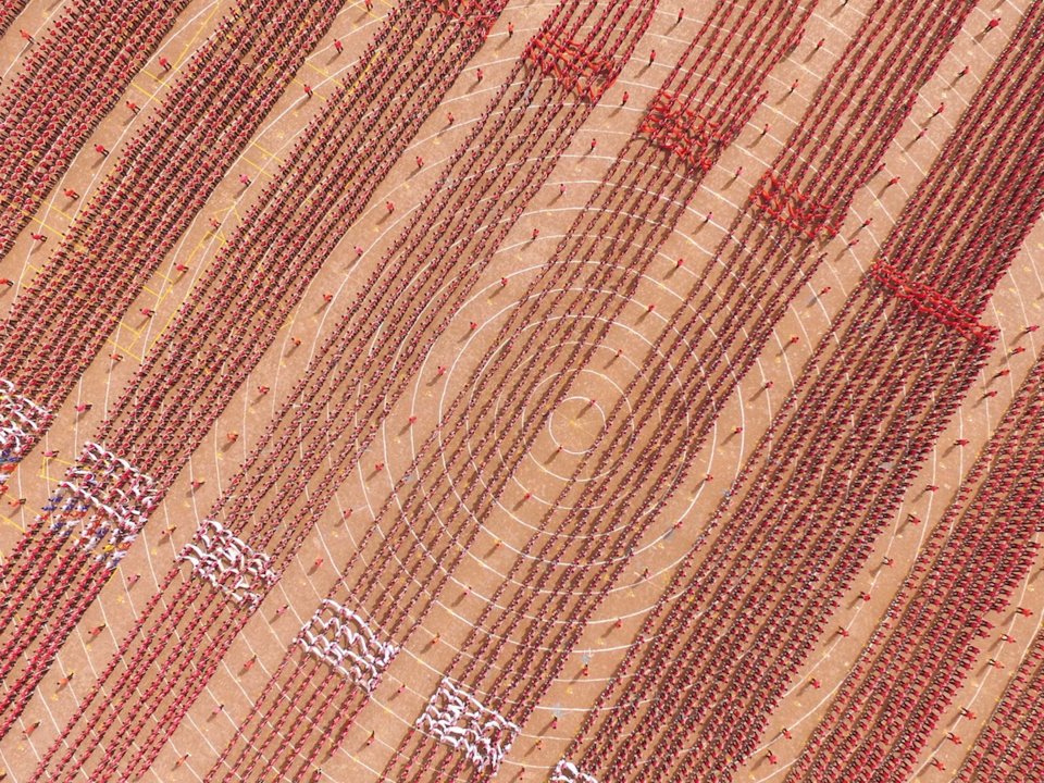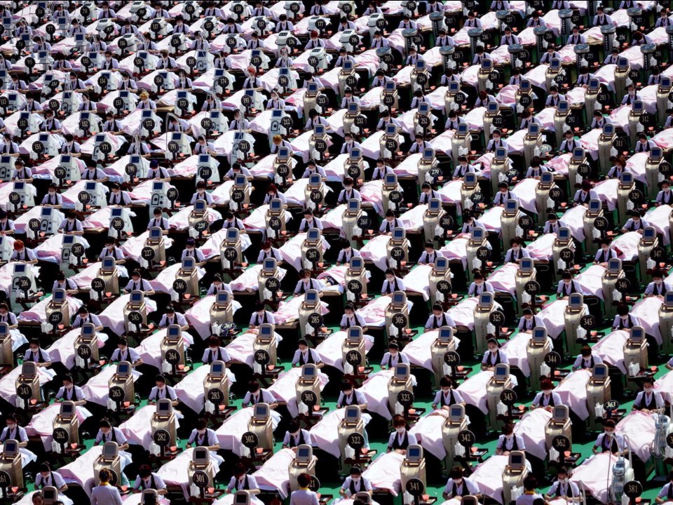 This photo shows the world record being set for the largest group of people having beauty treatment in the same location. 1000 women were given a 30 minutes facial massage in Jinan, Shandong Province.