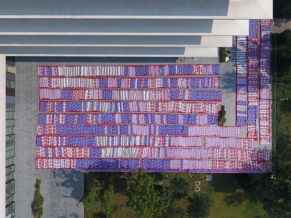 Here, quilts for Alibaba Group’s employees are dried in a yard in preparation for shopping on 11:11, “Singles’ Day,” in Hangzhou, Zhejiang Province.