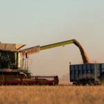 Combine harvester and truckImage copyright BLOOMBERG Image caption Farming has the most to gain – and lose from Brexit