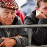 Two farmers at the Kelso ram sale in ScotlandImage copyright EPA
