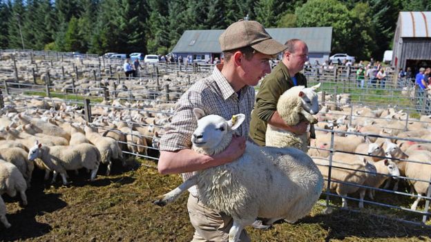 Farmers buy and sell at the Kelso ram sale in Scotland, 2016 Image copyright GETTY IMAGES