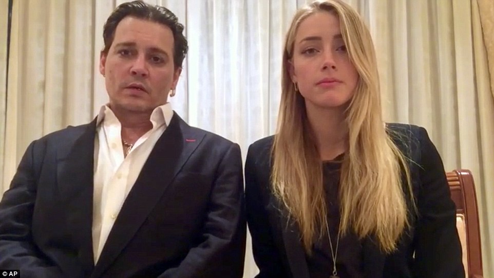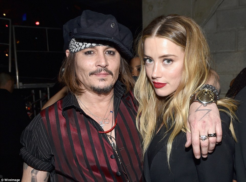 The couple are pictured here on February 15, 2015 two weeks after they were married. Heard says Depp has become difficult to handle due to a drug habit. She filed for divorce on May 22