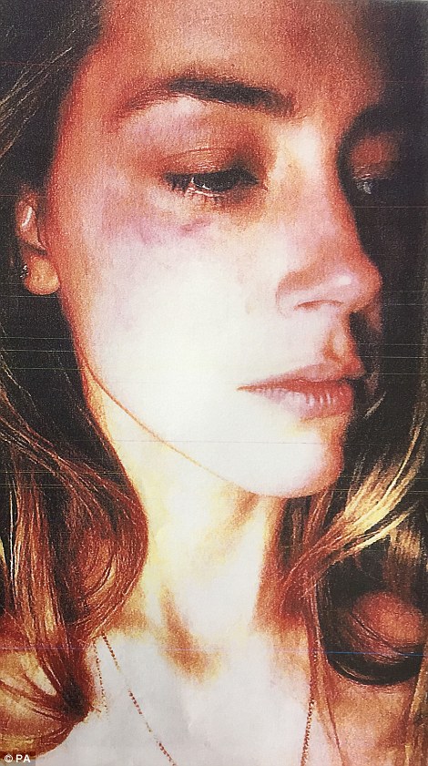 Photographs of the bruising on Heard’s face, which she claims was inflicted by Depp, were presented to Los Angeles Superior Court