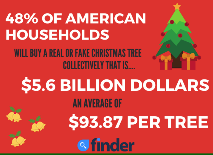 According to an analysis conducted by finder.com, Americans will spend an average of $93.87 on real and fake Christmas trees this year, resulting in a total spend of almost $5.6 billion.